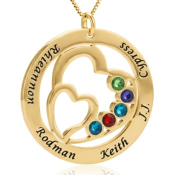 Heart in Heart Birthstone Name Necklace Gold Plated