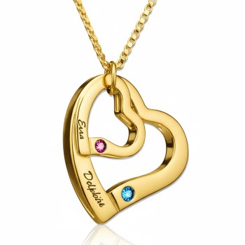 Heart Mother Birthstones Necklace Gold Plated Silver