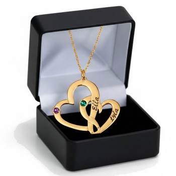 Intertwined Hearts Birthstones Necklace In Gold