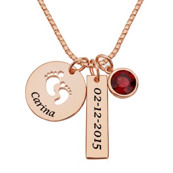 Mother Pendant Baby Feet Necklace - Rose Gold